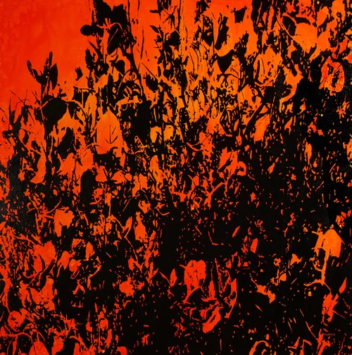 PALM BRANCHES 2018 ACRYLIC AND SPRAY ON LINEN 36”x36”